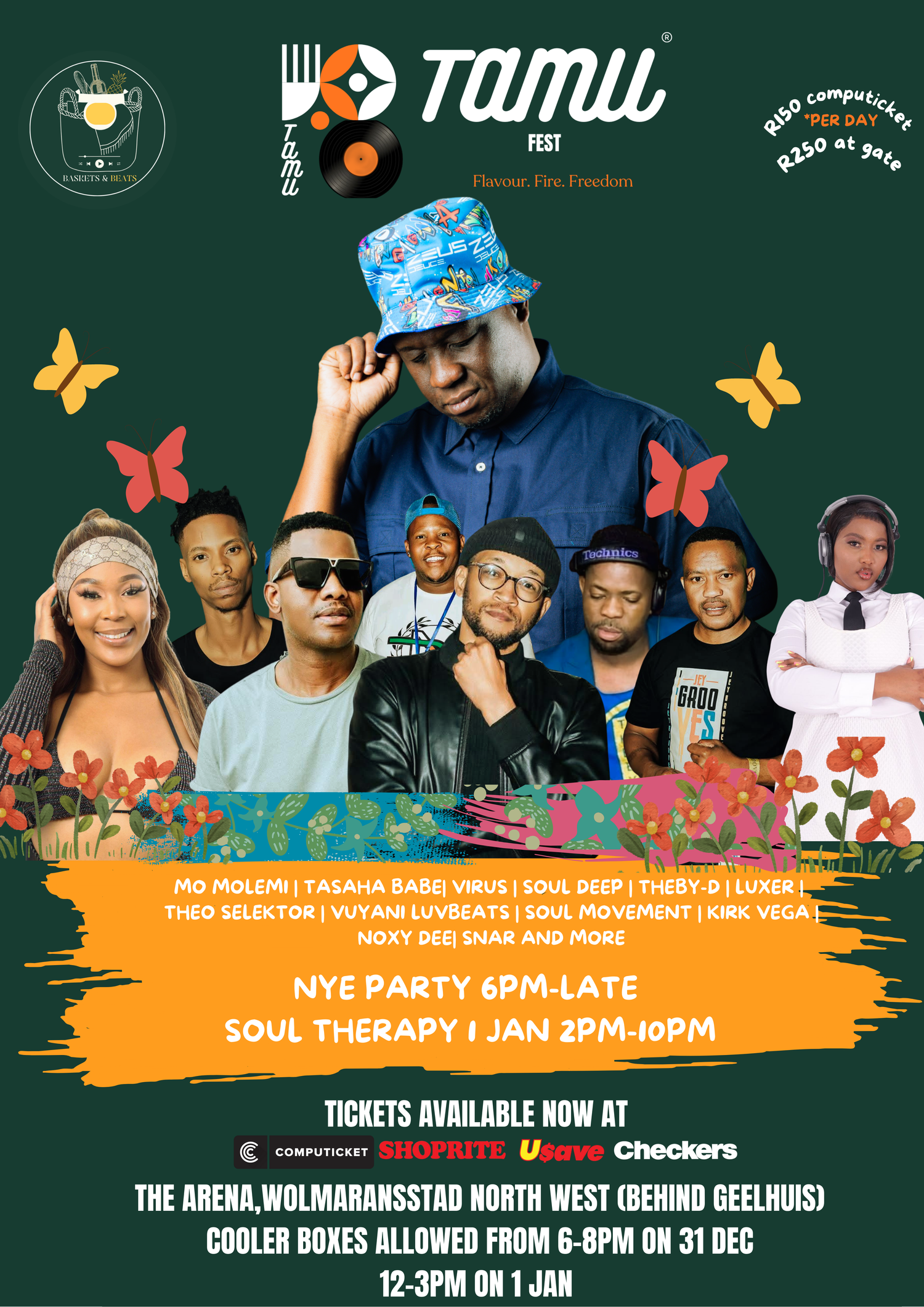 Tamu is a family-friendly camping festival set in Wolmaransstad, where music, food, and culture collide under open skies. “Tamu” means “to taste / to enjoy” in Swahili, and that’s exactly what the festival is about — savoring the best of community, creativity, and connection.